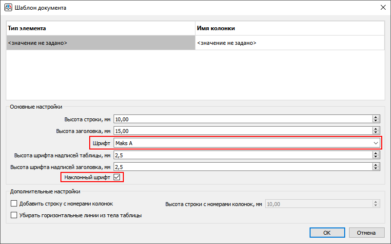 Реализована настройка применения наклонного начертания шрифта, а также определения шрифта текста таблиц.