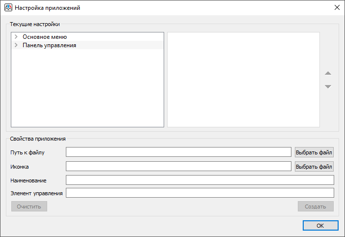 Для управления плагинами реализовано окно «Настройка приложений», вызываемое из меню «Настройки» → «Настройка приложений». Пункт «Настройка приложений» доступен в версии САПР «Макс», содержащей API.