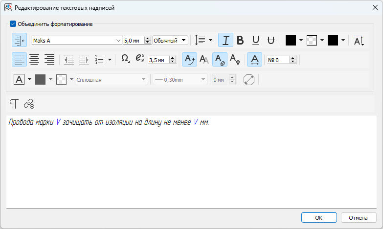 Инструмент позволяет применить к нескольким текстовым надписям общий текст и единый стиль форматирования.